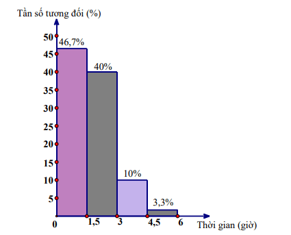 Câu 10 (TH). Trường THCS thực hiện một cuộc khảo sát các học sinh lớp 9 về thời gian sử dụng mạng xã hội trung bình trong một ngày (đơn vị: giờ), kết quả thu được như biểu đồ dưới đây: