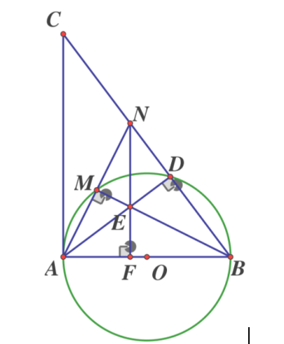 \(\widehat {CAD}\) cắt đường tròn (O) tại M và cắt BC tại N. Gọi E là giao điểm của AD và MB.