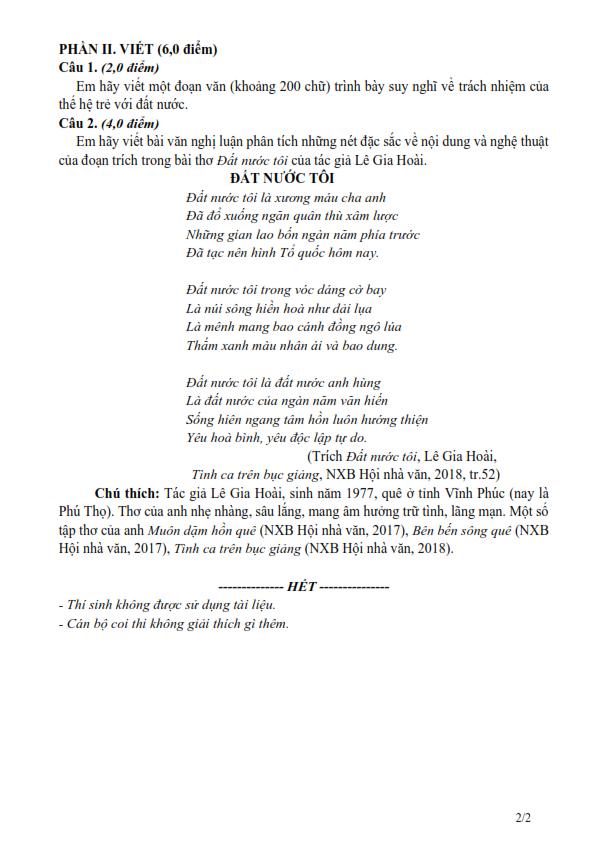2. Đề thi học kì 2 Văn 9 Sở GD&ĐT Hưng Yên năm 2022 - 2023