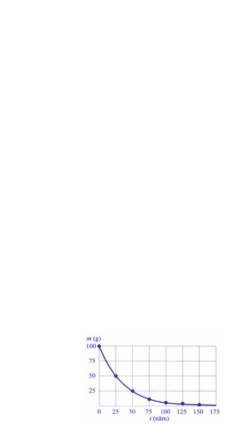 Câu 18. Đồ thị hình bên biểu diễn khối lượng của mẫu chất phóng xạ X thay đổi theo thời