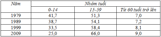 a. Hãy vẽ biểu đồ miền thể hiện sự thay đổi cơ cấu dân số của nước ta giai đoạn 1979 - 2009.