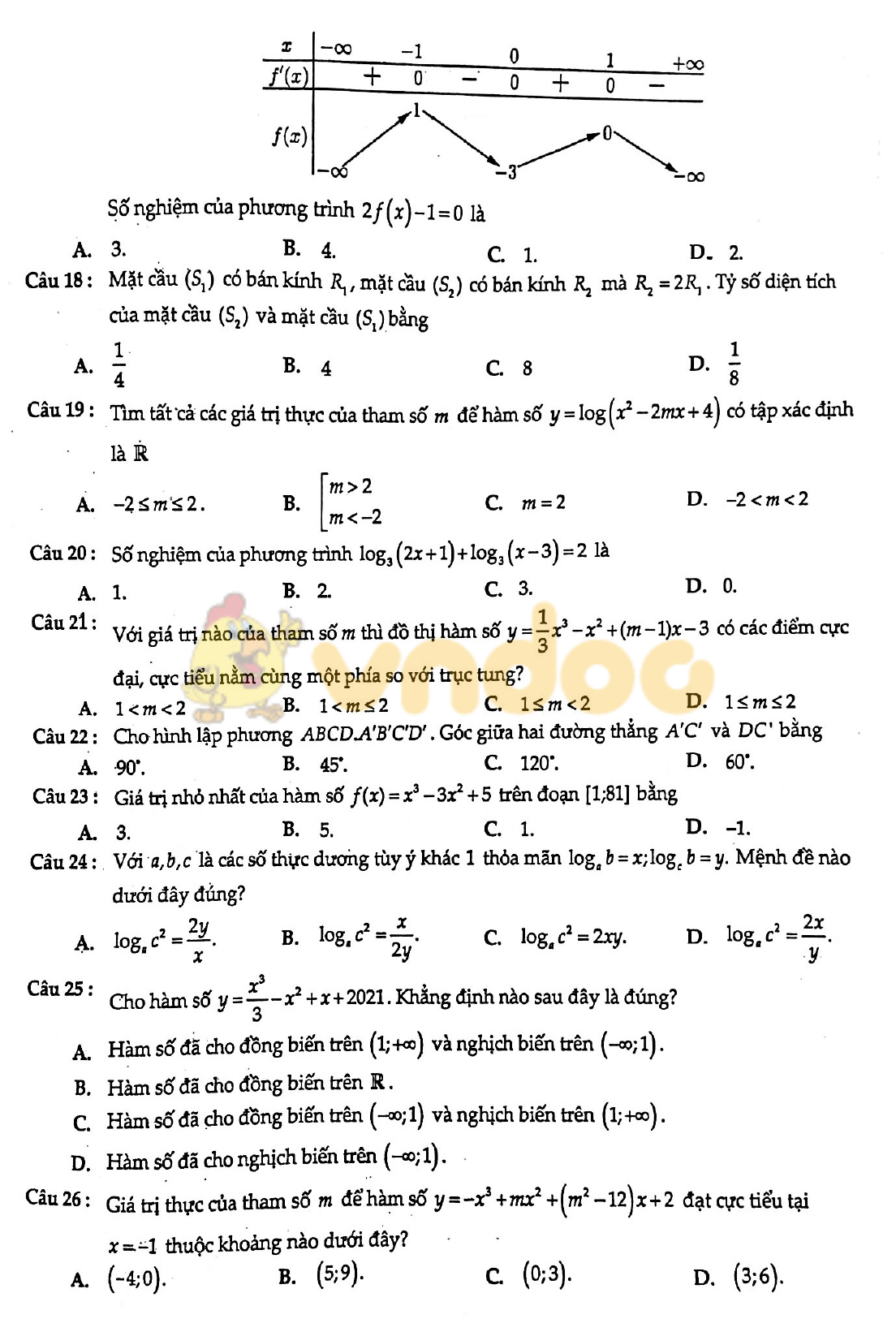 VnDoc giới thiệu Đề thi học kì 1 lớp 12 môn Toán trường THPT chuyên Ngoại Ngữ Hà Nội năm 2020 với 50 câu hỏi trắc nghiệm, là tài liệu hay giúp các em học sinh ôn luyện, chuẩn bị cho kì thi chính thức sắp tới đạt kết quả cao.