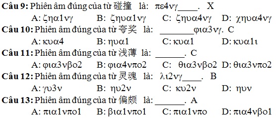 Đề thi học kỳ I lớp 12 THPT chuyên Thái Nguyên năm 2012 - 2013 môn Tiếng Trung - Có đáp án