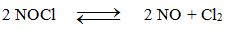 Nitrosyl clorua NOCl khi đun nóng sẽ phân hủy thành NO và Cl2 theo phương trình: ![]()