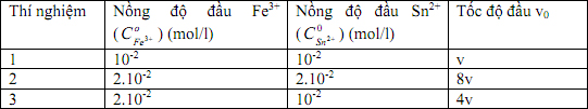 b. Tính hằng số cân bằng của phản ứng biết EoFe3+/Fe2+ = 1,77V và EoSn4+/Sn2+ = 0,15V.