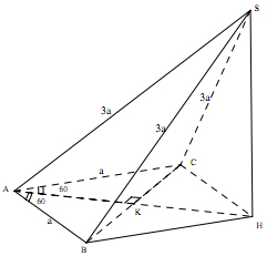 Cho hình chóp S.ABC có AB = AC = a , góc BAC bằng 1200, SA = SB = SC = 3a.