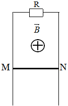 Hai thanh ray kim loại thẳng đứng, dài, tựa trên hai thanh này là thanh kim loại MN có khối lượng m=30g, chiều dài 50cm. Các thanh ray và thanh MN đều không có điện trở, hai đầu trên của các thanh ray được nối với dây dẫn có điện trở R=0,2 tạo thành mạch kín.