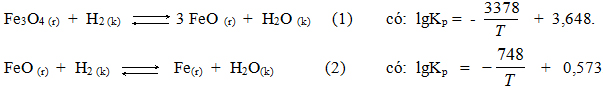 b. Trong một bình kín dung tích không đổi tại nhiệt độ 10000C, ban đầu có 0,1 mol Fe3O4, người ta 0,4 mol cho H2 vào. Xác định thành phần của hệ tại thời điểm cân bằng.