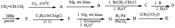 2. Tetrađec-11-enyl axetat là chất dẫn dụ của sâu đục hạt ngô. Một đồng phân hình học của chất này (K) được tổng hợp theo sơ đồ dưới đây: