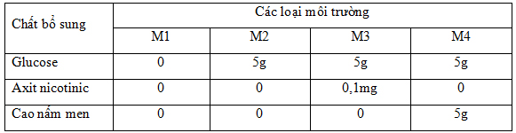 Các nguyên tố vi lượng (Mn, Mo,Cu, Zn): mỗi loại 2. 10-5