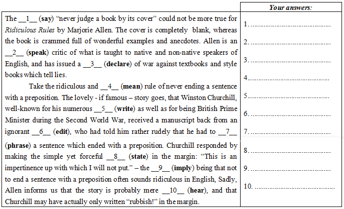 PART VII. Give the correct form of the word in bracket to complete the passage.