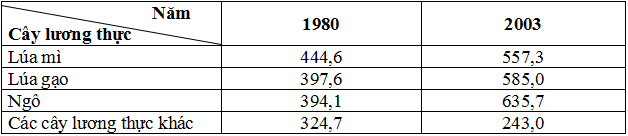 Sản lượng lương thực của thế giới năm 1980 và 2003