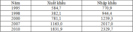 Giá trị xuất khẩu, nhập khẩu của Hoa Kì (Đơn vị: tỉ USD)
