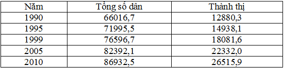 TỔNG SỐ DÂN VÀ DÂN SỐ THÀNH THỊ CỦA NƯỚC TA (Đơn vị: nghìn người)
