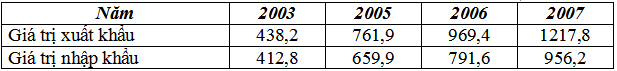 Cho bảng số liệu: Giá trị xuất, nhập khẩu của Trung Quốc thời kì 2003 – 2007