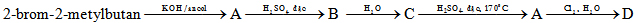 2. Viết các phương trình hóa học thực hiện chuyển hóa sau (biết A, B, C, D là các sản phẩm chính):