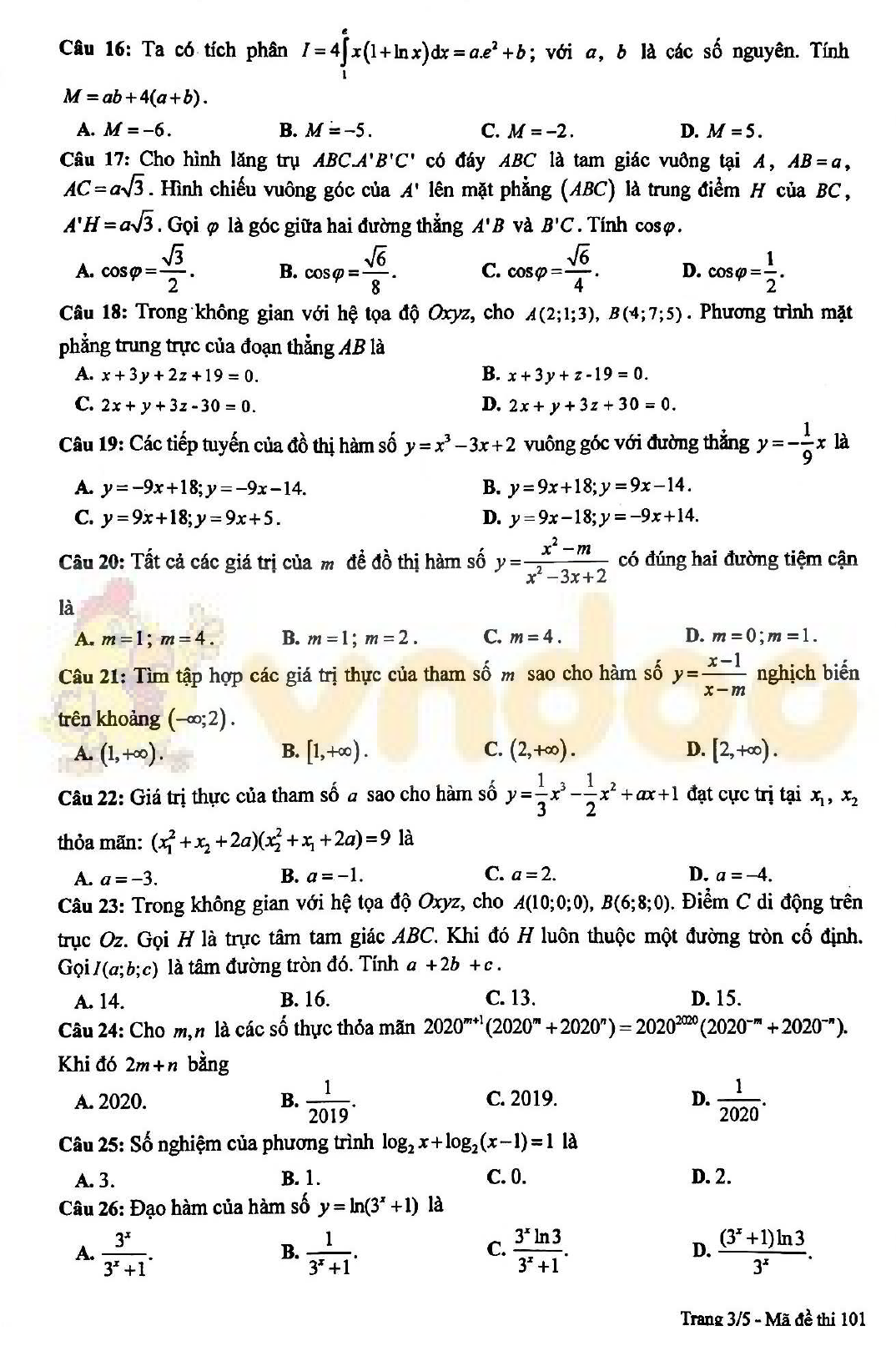 VnDoc.com xin gửi tới bạn đọc bài viết Đề thi học sinh giỏi lớp 12 môn Toán năm 2019-2020 Sở GD&ĐT Bắc Giang để bạn đọc cùng tham khảo. Đề thi gồm có 40 câu hỏi trắc nghiệm, 3 câu hỏi tự luận. Thí sinh làm bài trong thời gian 120 phút. Mời các bạn cùng tham khảo chi tiết.