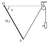 Cho một cơ hệ (như hình vẽ bên), thanh đồng nhất OA có khối lượng M, chiều dài l có thể quay tự do quanh trục O cố định nằm