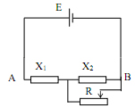 Trong sơ đồ mạch điện (hình vẽ bên) có X1, X2 là hai phần tử phi tuyến giống nhau mà đặc trưng vôn–ampe được mô tả bằng công thức U = 10I2 (U đo bằng vôn, I đo bằng ampe). Nguồn điện có suất điện động E = 10V và điện trở trong không đáng kể. Để công suất tỏa nhiệt trên biến trở đạt giá trị cực đại, phải điều chỉnh cho biến trở R có giá trị bằng bao nhiêu?