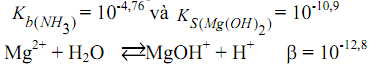 Câu 1. Trộn 1ml dung dịch MgCl2 0,01M với 1ml dung dịch hỗn hợp gồm NH3 1M và NH4Cl 1M. Kết tủa có xuất hiện không?