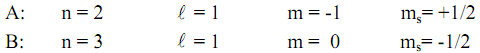 Câu 2. Electron cuối cùng phân bố vào các nguyên tử của các nguyên tố A, B lần lượt có các số lượng tử sau: