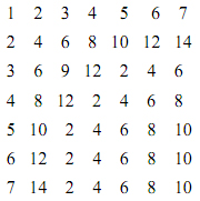 Hãy viết chương trình tạo mảng N x N phần tử nguyên dương (giá trị lớn nhất trong bảng là 2*N) theo quy luật cho trong ví dụ sau với N = 7