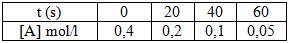 2. Cho độ biến thiên nồng độ chất phản ứng theo thời gian được biểu diễn theo bảng như sau: