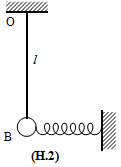 2) Quả cầu, lò xo và thanh OB ghép với nhau tạo thành cơ hệ như hình vẽ (H.2). Thanh nhẹ OB treo thẳng đứng. Con lắc lò xo nằm ngang có quả cầu nối với thanh. Ở vị trí cân bằng của quả cầu lò xo không bị biến dạng. Từ vị trí cân bằng kéo quả cầu trong mặt phẳng chứa thanh và lò xo để thanh OB nghiêng với phương thẳng đứng góc α0 < 100 rồi buông không vận tốc đầu. Bỏ qua mọi ma sát và lực cản.