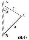 Một thanh đồng chất BC tựa vào tường thẳng đứng tại B nhờ dây AC dài L hợp với tường một góc α như hình (H.4). Biết thanh BC có độ dài d. Hỏi hệ số ma sát giữa thanh và tường phải thỏa điều kiện nào để thanh cân bằng?