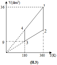 Một mol khí lí tưởng thực hiện chu trình 1 - 2 - 3 - 4 như hình vẽ (H.3). Cho biết : T1 = T2 = 360K; T3 = T4 = 180K; V1 =36dm3; V3 = 9dm3. Cho hằng số khí lý tưởng R = 8,31 J/mol.K