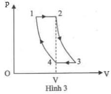 Một lượng khí lí tưởng biến đổi theo chu trình như hình 3. Cho biết tỉ số: V3/V2 = α