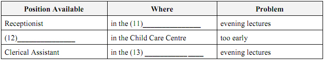 Part 2: For questions 9 - 18, you will hear a conversation between a student and a job advisor. Questions 9 and 10, complete the notes below. Write NO MORE THAN THREE WORDS AND/OR A NUMBER for each answer.