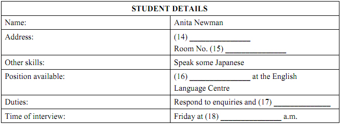 Questions 14 and 18, complete the form below. Write NO MORE THAN THREE WORDS AND/OR A NUMBER for each answer.