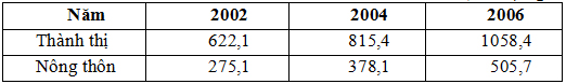 Thu nhập bình quân đầu người/tháng ở thành thị, nông thôn nước ta qua các năm. (Đơn vị: nghìn đồng)