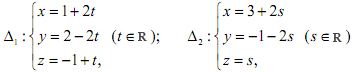 3) Trong không gian , Oxyz cho điểm M(0;2;0) và hai đường thẳng