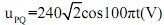 Cho mạch điện không phân nhánh như hình 2, gồm có điện trở thuần R = 80Ω, cuộn dây L không thuần cảm và tụ điện C. Điện áp giữa hai điểm P và Q có biểu thức