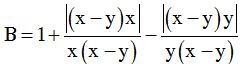 Xét trường hợp x < y < 0; y < x < 0; x > y > 0 và y > x > 0 ta đều được B = 1