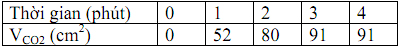 2. Cho một mẫu đá vôi (CaCO3) vào ống nghiệm chứa 10ml dung dịch HCl 1M. Cứ sau 1 phút người ta đo thể tích khí CO2 thoát ra, được kết quả như sau: