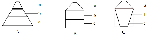 Biểu đồ sau đây biểu diễn các dạng tháp tuổi của quần thể sinh vật: