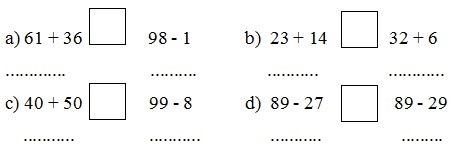 Câu 1: (4 điểm) Điền dấu >, < ,= vào ô trống (Viết kết quả phép tính để giải thích cách điền)