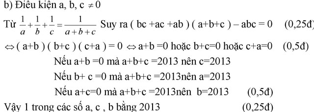 b) Chứng minh rằng: nếu a, b, c là ba số thỏa mãn a + b + c = 2013 và