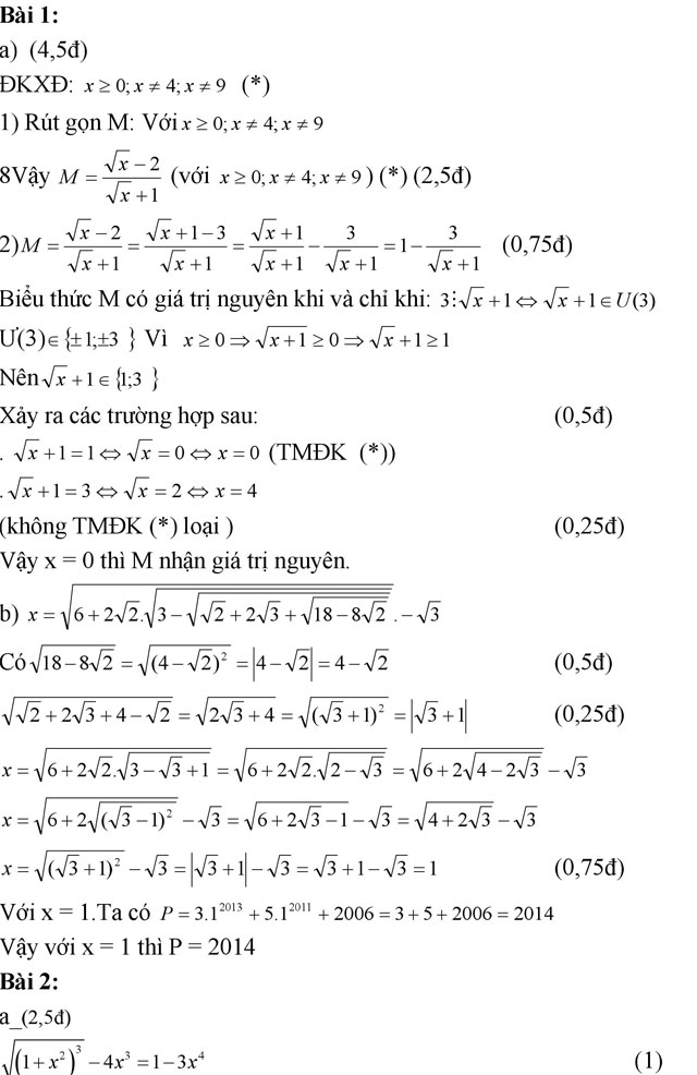 - Tìm giá trị nguyên của x để biểu thức M nhận giá trị là số nguyên
