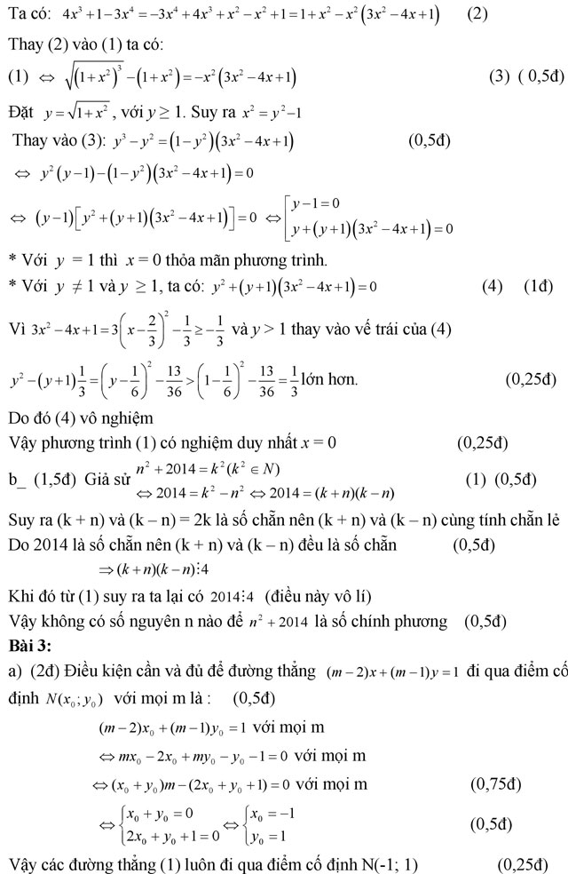 Chứng minh rằng đường thẳng (1) luôn đi qua một điểm cố định với mọi giá trị của m