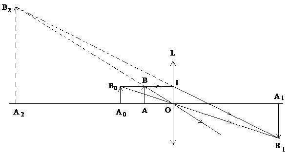 Một vật là một đoạn thẳng sáng AB được đặt vuông góc với trục chính của một thấu kính hội tụ (điểm A nằm trên trục chính) cho ảnh thật A1B1 cao 1,2 cm. Khoảng cách từ tiêu điểm đến quang tâm của thấu kính là 20 cm. Dịch chuyển vật đi một đoạn 15 cm dọc theo trục chính thì thu được ảnh ảo A2B2 cao 2,4 cm. Xác định khoảng cách từ vật đến thấu kính trước khi dịch chuyển và tìm độ cao của vật.