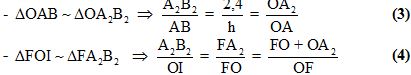* Giải hệ phương trình (*) và (**) ta có: h = 0,6 cm; d = 30 cm.