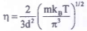 với A là diện tích tiếp xúc giữa hai lớp chất khí, dv/dr là độ biến thiên tốc độ trên một đơn vị chiều dài theo phương vuông góc với dòng chạy, η là độ nhớt mà giá trị của nó phụ thuộc vào đường kính phân tử khí d và nhiệt độ T của chất khí theo công thức sau: