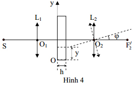b) Từ vị trí đồng trục, quay thấu kính L2 một góc ϕ nhỏ, sao cho trục chính của L2 vẫn nằm trong mặt phẳng chứa Oy và O2 (Hình 4). Xác định vị trí mới của ảnh.