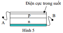 2. (5,0 điểm) Khảo sát đặc tính của pin quang điện Pin quang điện có cấu tạo gồm lớp chuyển tiếp p - n và hai điện cực (Hình 5). Một trong hai điện cực làm bằng chất có tính dẫn điện tốt và ánh sáng có thể xuyên qua. Khi chiếu sáng thích hợp vào lớp chuyển tiếp p - n sẽ xuất hiện hiệu điện thế một chiều ở hai điện cực của pin.