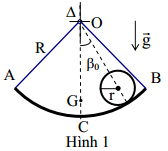 2. Giữ cho vật 1 luôn cố định rồi đặt trên nó vật 2 là một hình trụ rỗng, mỏng, đồng chất, cùng chiều dài với vật 1, bán kính r (r < R), nằm dọc theo đường sinh của vật 1. Kéo vật 2 lệch ra khỏi vị trí cân bằng một góc nhỏ β0rồi thả nhẹ.