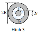 Một tụ điện trụ dài L, bán kính các bản tụ tương ứng là r và R. Không gian giữa hai bản tụ được lấp đầy bởi hai lớp điện môi cứng, cùng chiều dày, có hằng số điện môi tương ứng là ε1 và ε2 (Hình 3). Lớp điện môi ε1 có thể kéo được ra khỏi tụ điện. Tụ điện được nối với hai cực của nguồn điện có hiệu điện thế U không đổi.